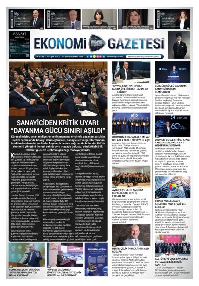 2019 YILINDAN İTİBAREN 15 GÜNLÜK PERİYODLAR HALİNDE "SANAYİ, EKONOMİ, FİNANS, AR-GE, SAVUNMA, DÜNYA, POLİTİKA, SİYASET, TİCARET, İHRACAT, TEŞVİK, OSB,TGB, SEB VE ODA BORSA HABERLERİ" GAZETEMİZ'DE YAYINLAMIR.