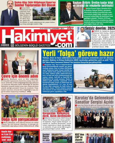 02.08.1197 tarihi itibari ile yayın hayatına başlayan Hâkimiyet Gazetesi 22 yıldır Konya merkezli olmak üzere merkez ve 31 ilçesine objektif haber anlayışıyla yayın yapmaktadır.